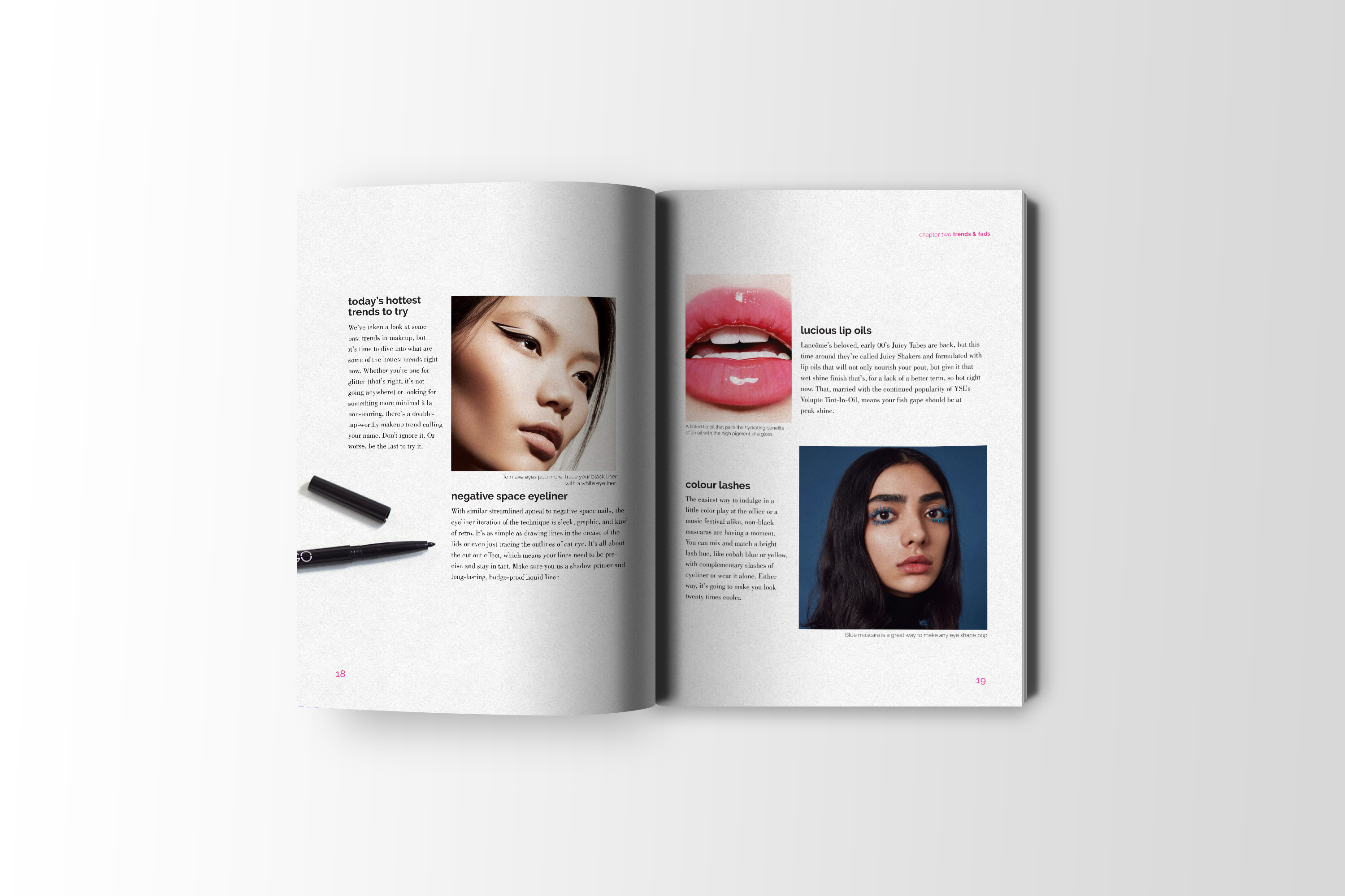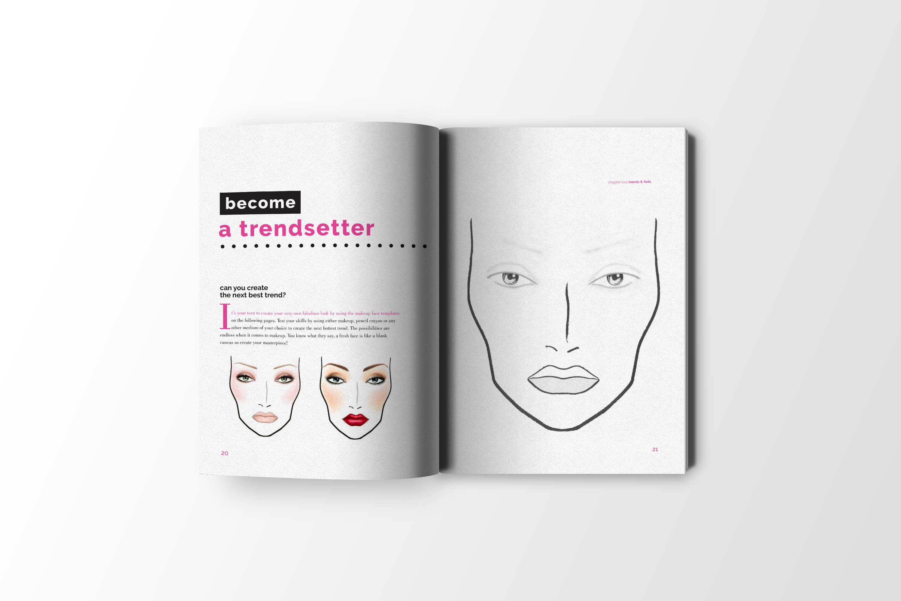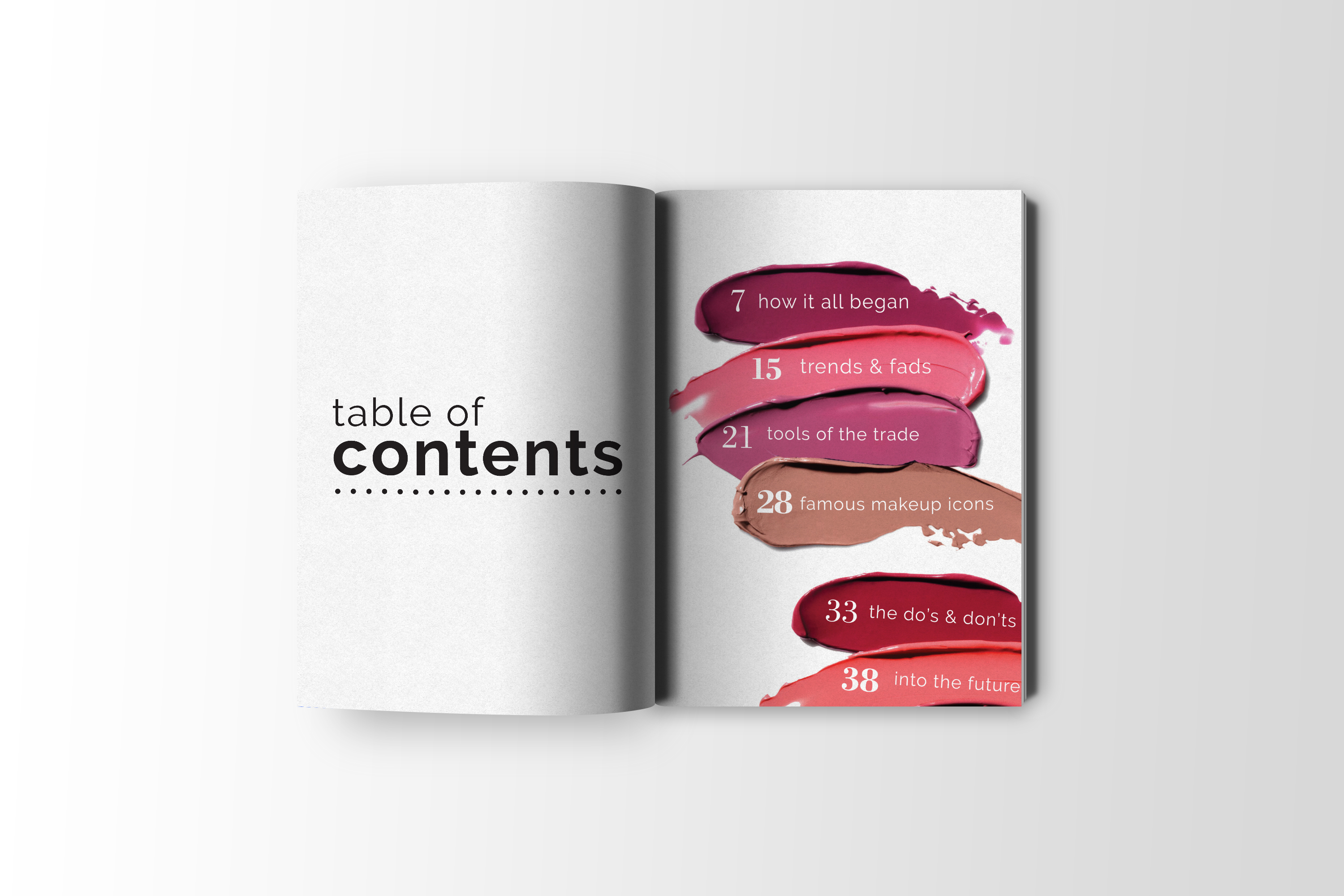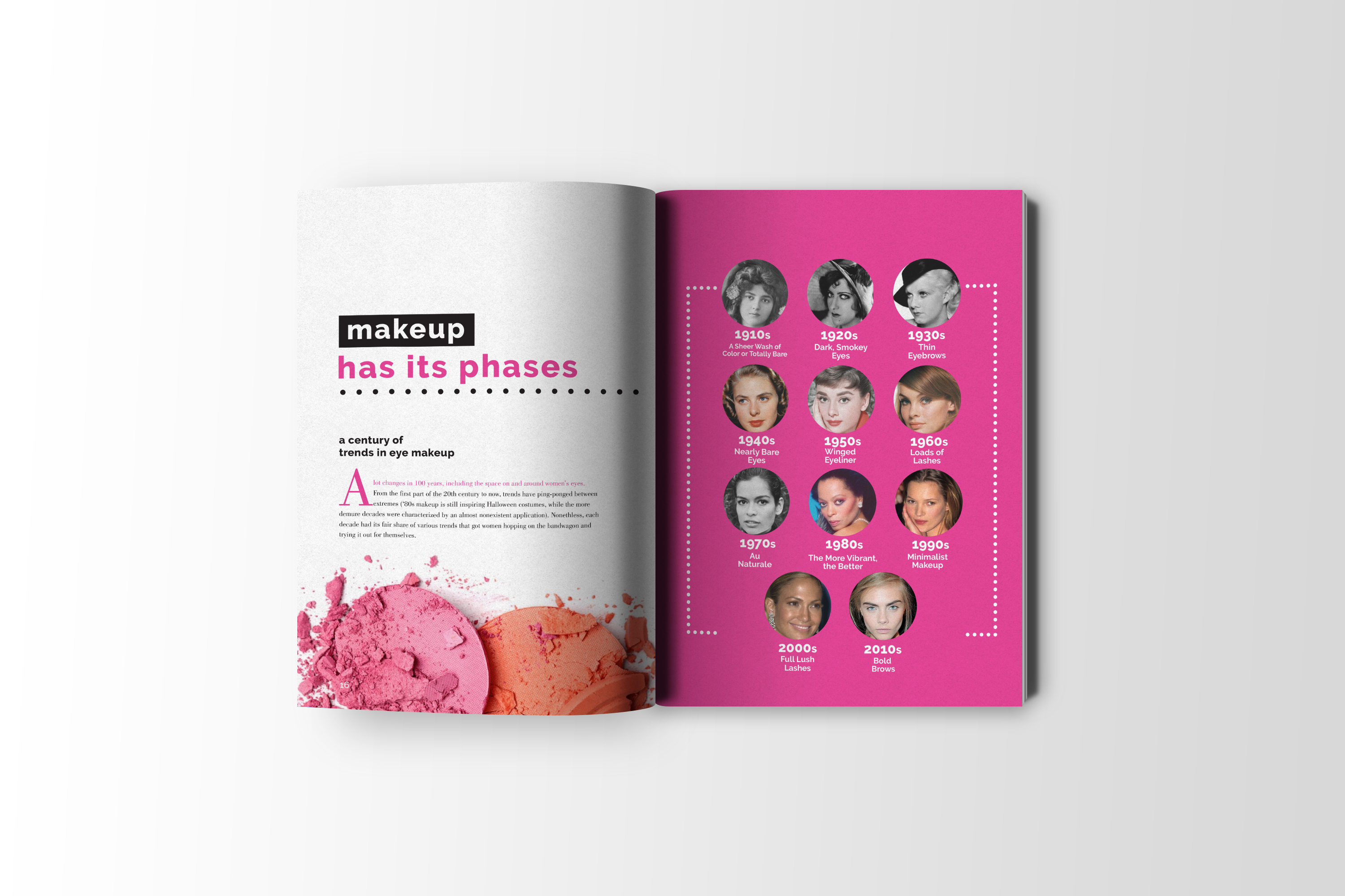 Evolution of Beauty Three part book set focusing on the evolution of beauty through hair, makeup and fashion.The following spreads are from the makeup edition.