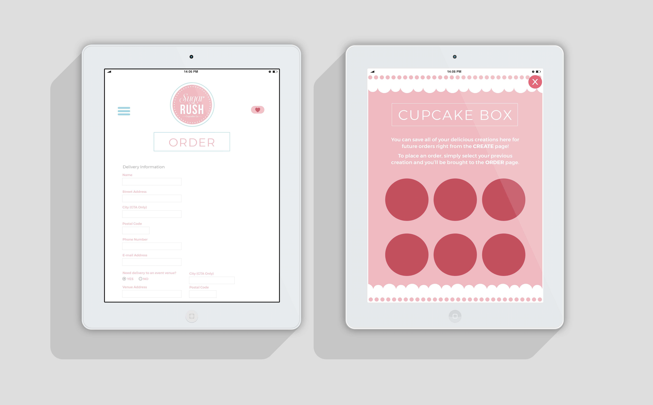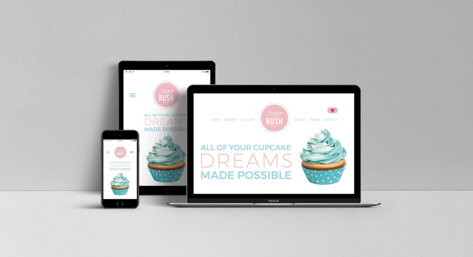 Website design for a fictional cupcake company created to be responsive for mobile, tablet and desktop screens.